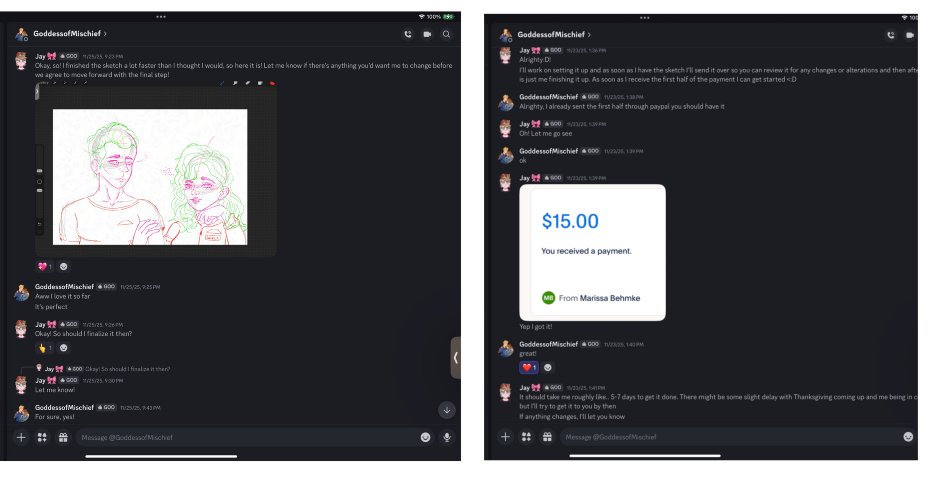 — (Second payment after agreed upon sketch ⤵️) —